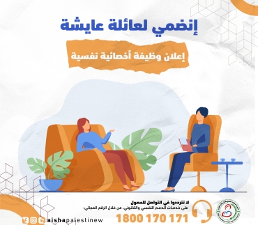 إعلان وظيفة أخصائية نفسية جمعية عايشة جمعية أهلية فلسطينية غير ربحية مستقلة تسعى إلى حماية النساء والأطفال...