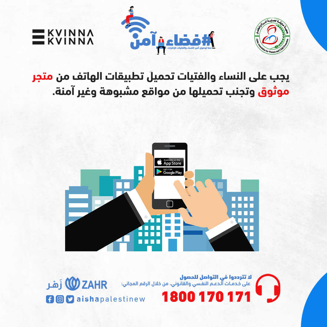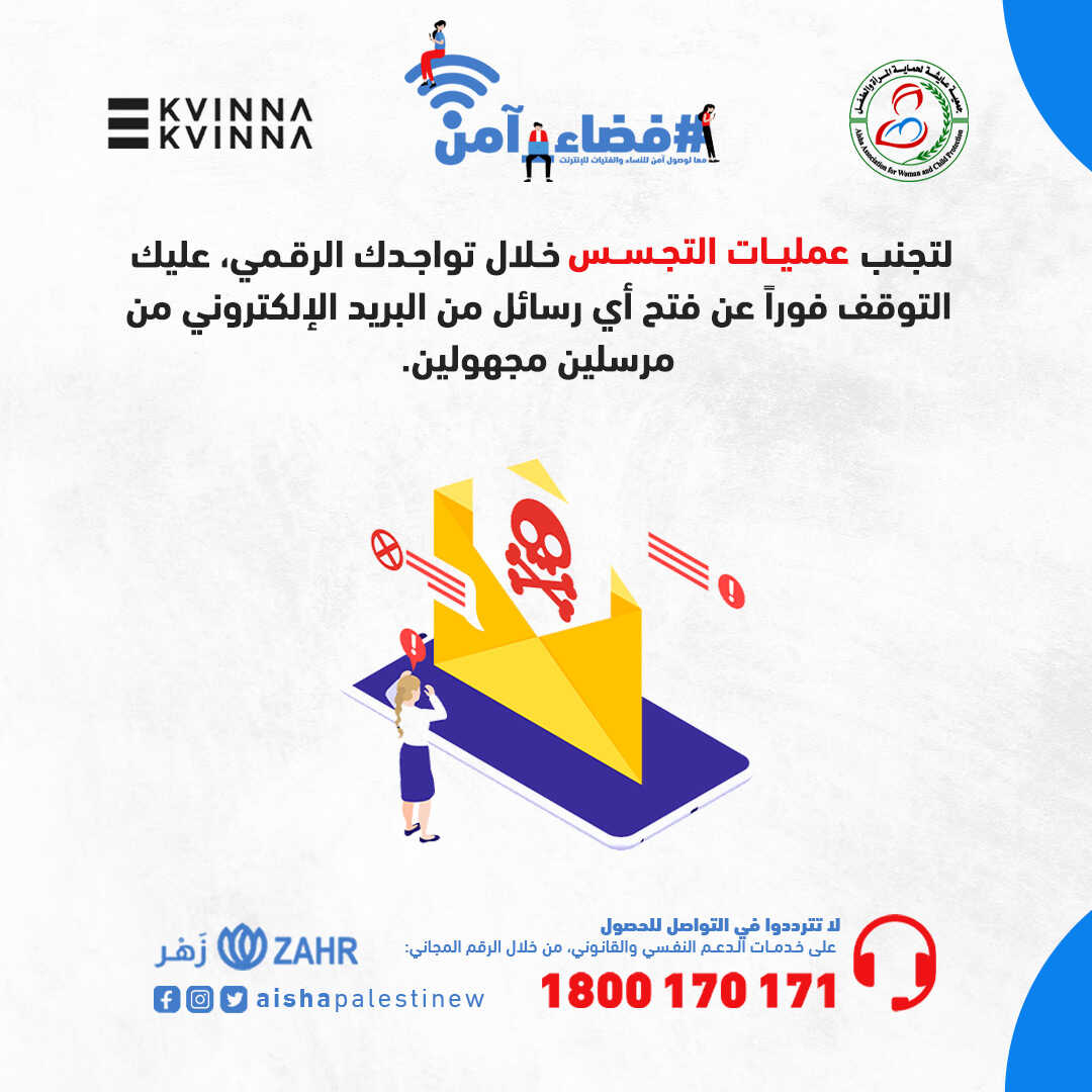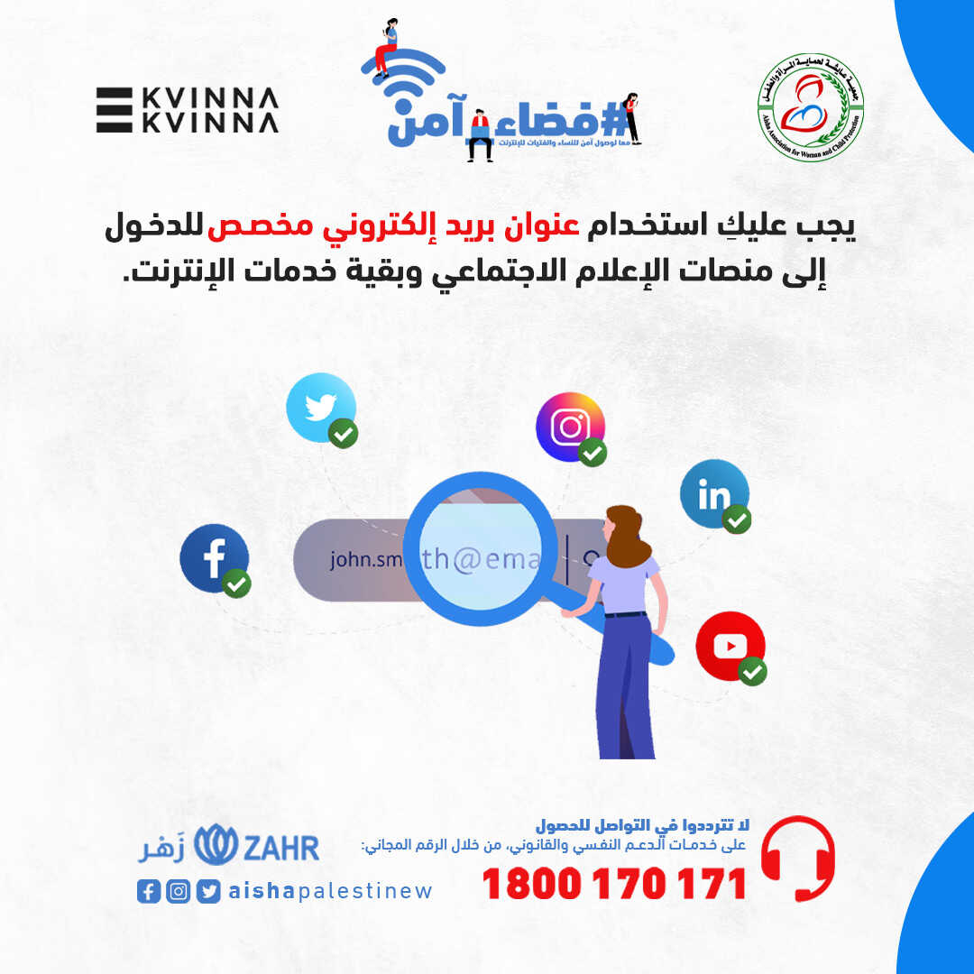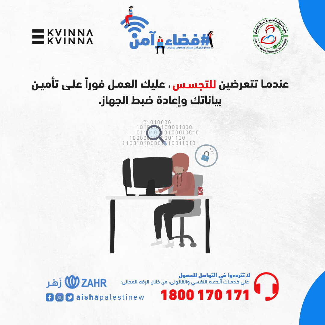 لأن الحقوق الّتي يتمتّع بها الناس خارج نطاق الإنترنت هي ذات الحقوق التي يجب حمايتها داخل نطاق الإنترنت، أطلفنا في جمعية عايشة لحماية المرأة والطفل حملة فضاء آمن ضمن أنشطة مشروع "إشراك الرجال والنساء في معالجة العنف المبني على النوع الاجتماعي والمساواة بين الجنسين في قطاع غزة، بتمويل من Kvinna til Kvinna.