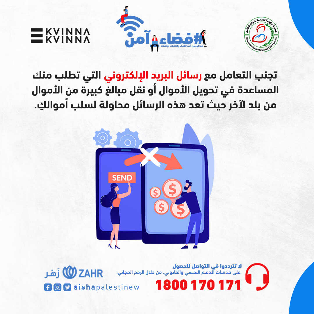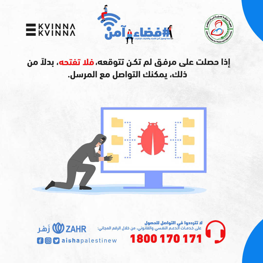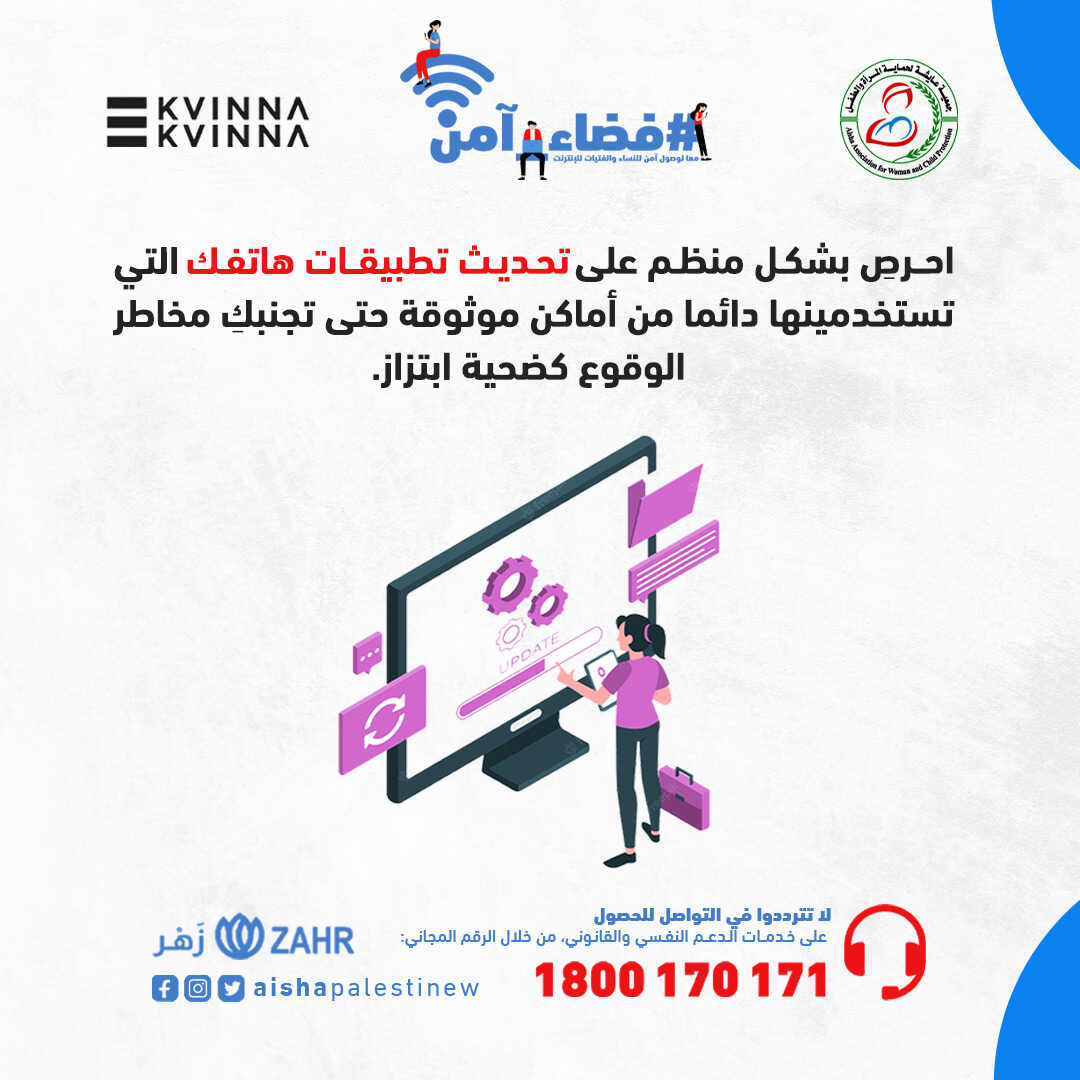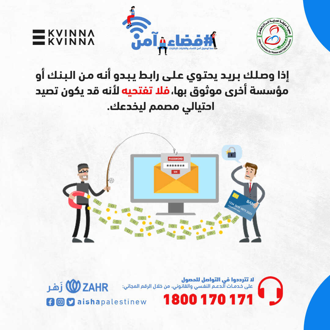 لأن الحقوق الّتي يتمتّع بها الناس خارج نطاق الإنترنت هي ذات الحقوق التي يجب حمايتها داخل نطاق الإنترنت، أطلفنا في جمعية عايشة لحماية المرأة والطفل حملة فضاء آمن ضمن أنشطة مشروع "إشراك الرجال والنساء في معالجة العنف المبني على النوع الاجتماعي والمساواة بين الجنسين في قطاع غزة، بتمويل من Kvinna til Kvinna.