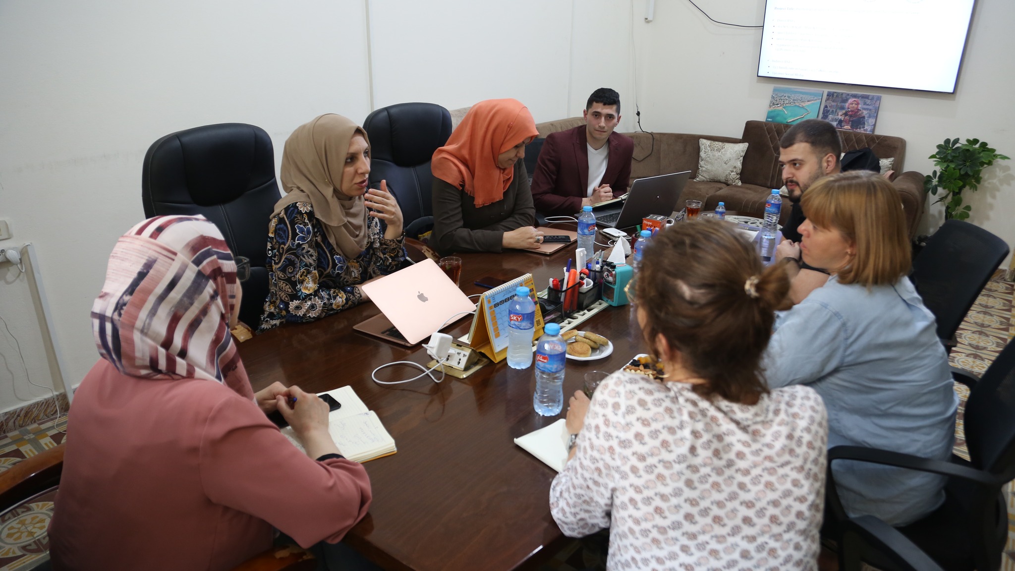حيث كان في استقبالهم المديرة التنفيذية للجمعية الأستاذة/ ريم فرينة ومسؤولة تجنيد الأموال والعلاقات الدولية م. مريم أبو العطا، ومديرة البرامج/ فاطمة أبو العطا ومنسق المشروع م. إياد سابا.