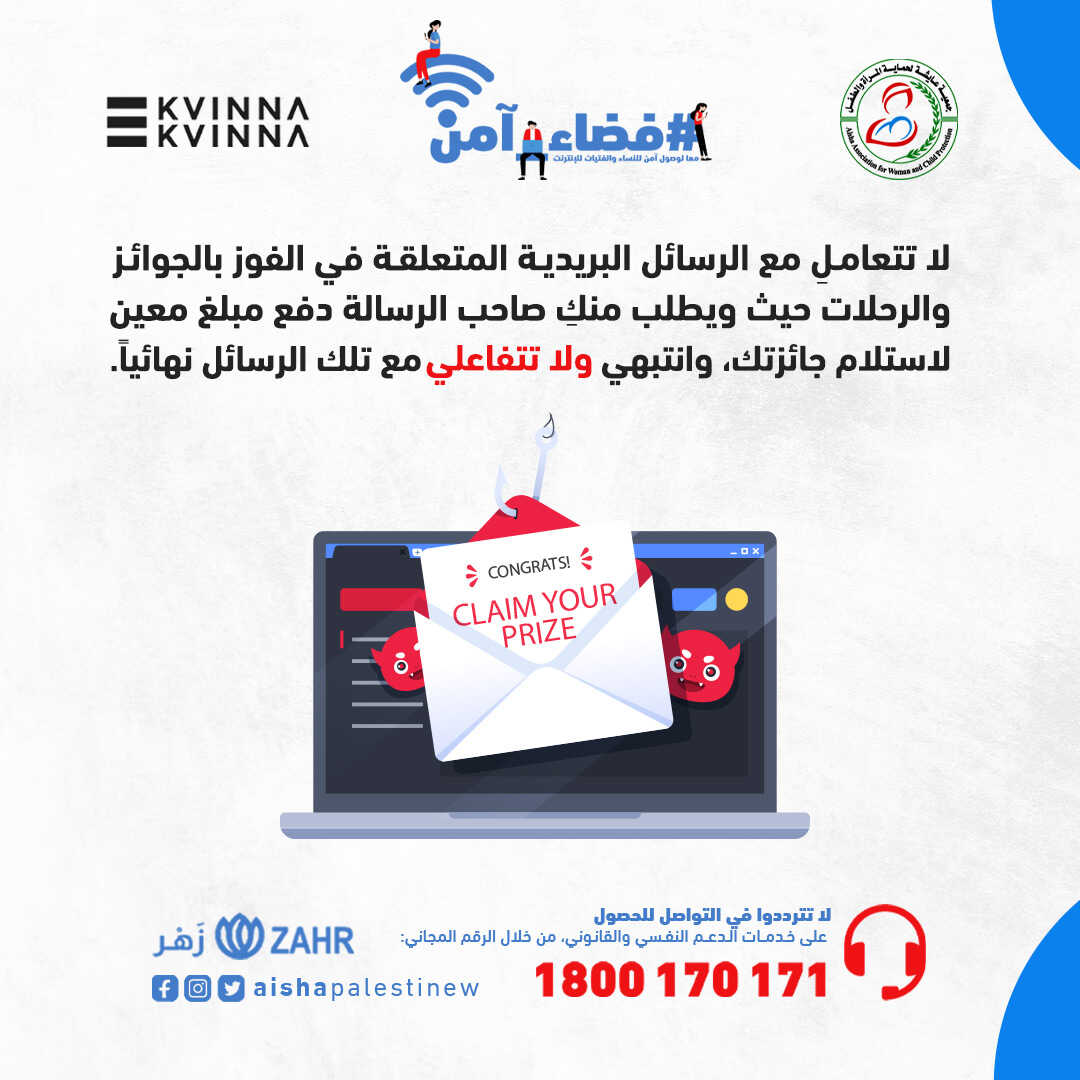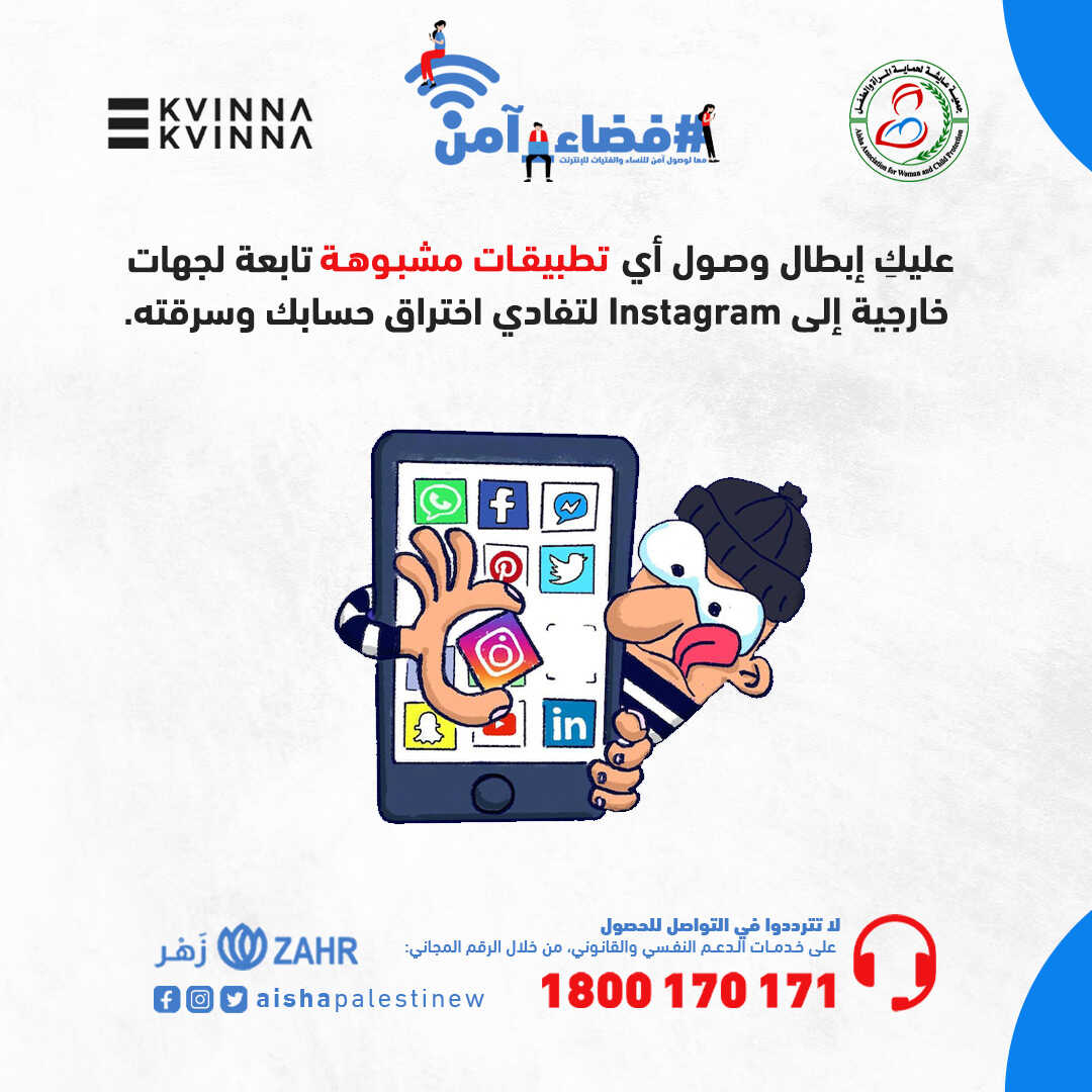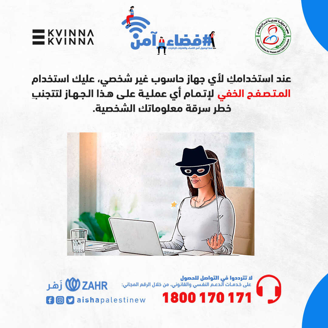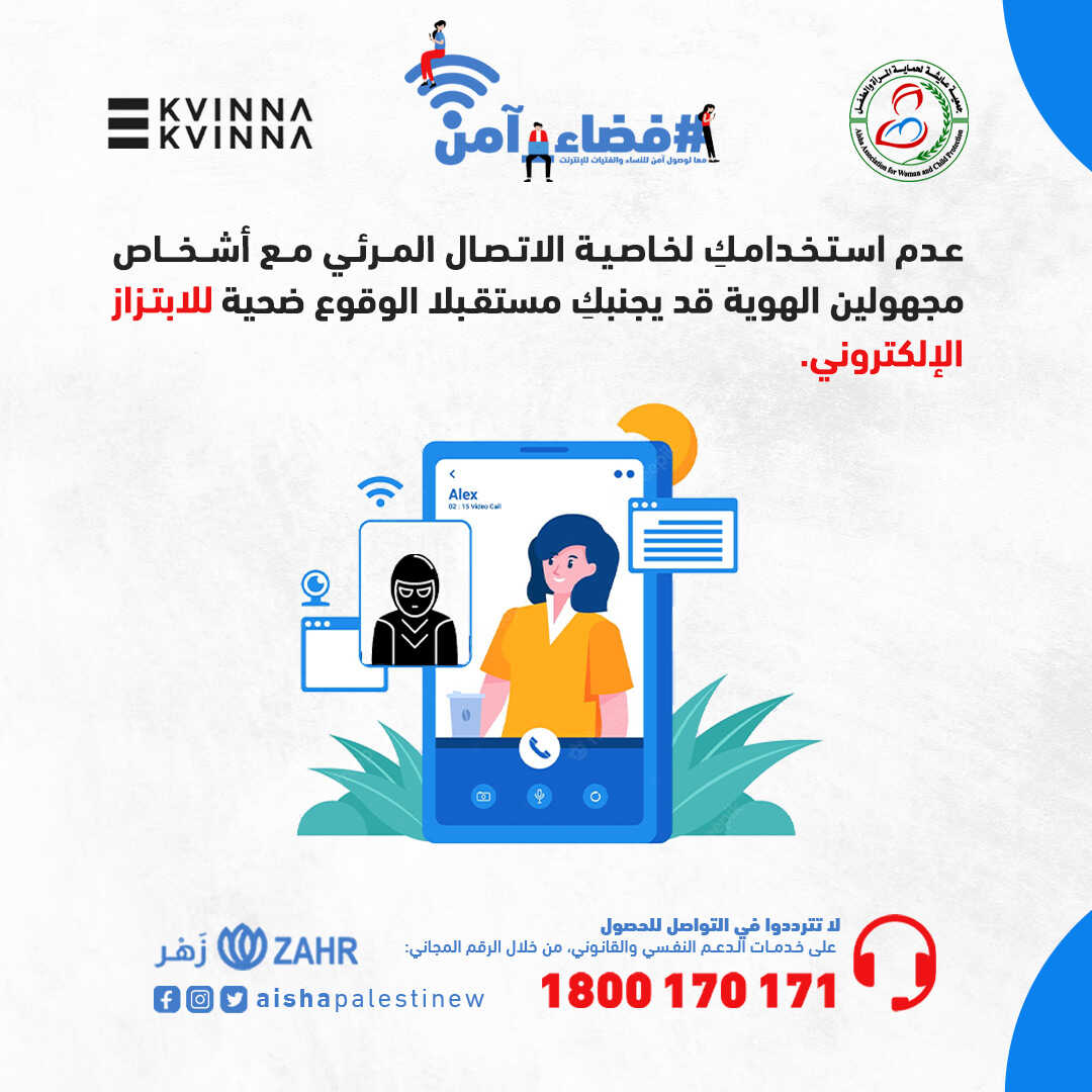 لأن الحقوق الّتي يتمتّع بها الناس خارج نطاق الإنترنت هي ذات الحقوق التي يجب حمايتها داخل نطاق الإنترنت، أطلفنا في جمعية عايشة لحماية المرأة والطفل حملة فضاء آمن ضمن أنشطة مشروع "إشراك الرجال والنساء في معالجة العنف المبني على النوع الاجتماعي والمساواة بين الجنسين في قطاع غزة، بتمويل من Kvinna til Kvinna.